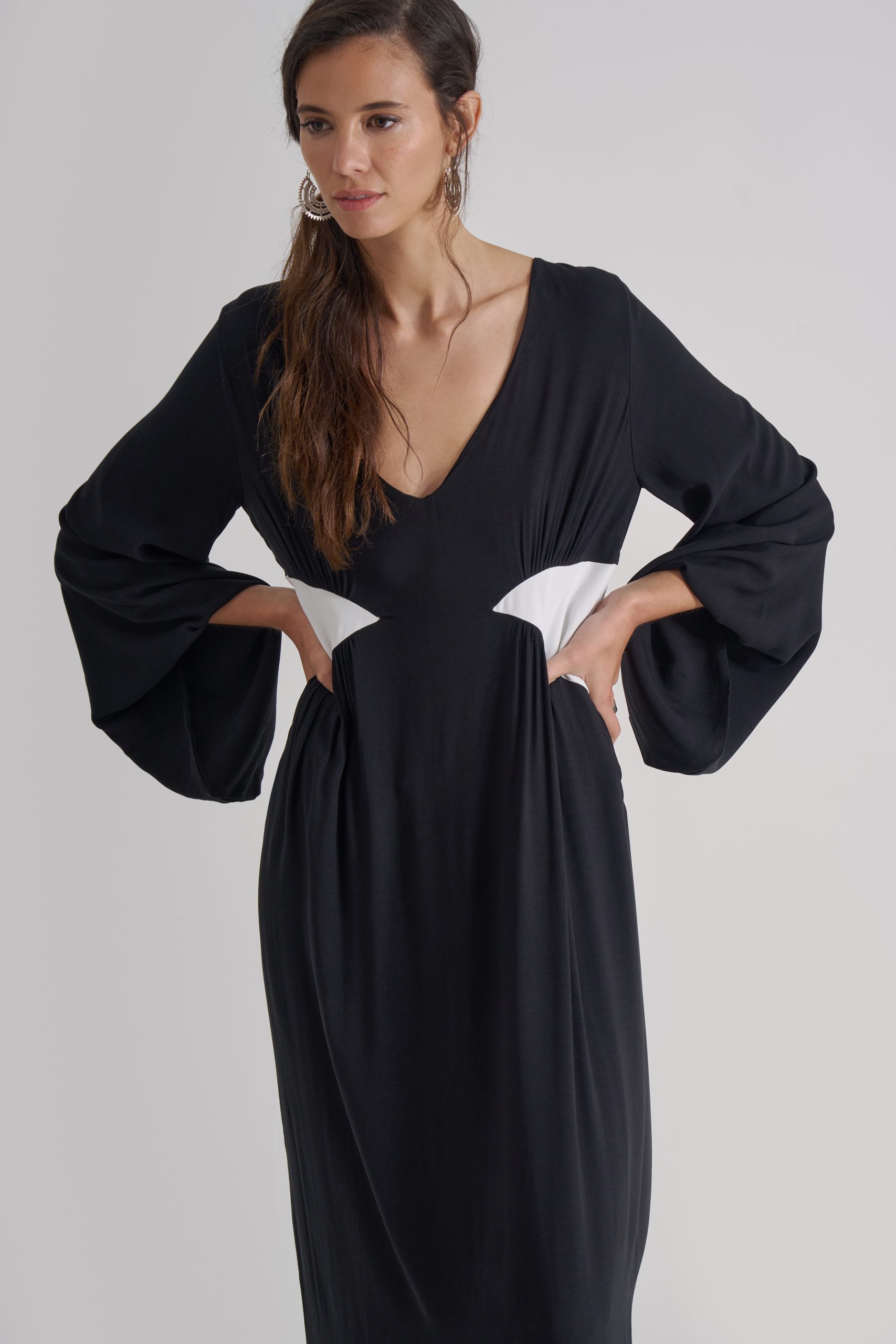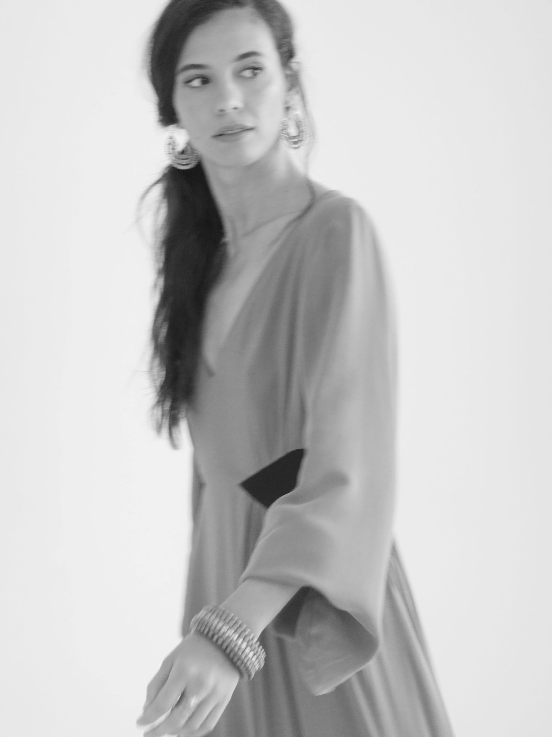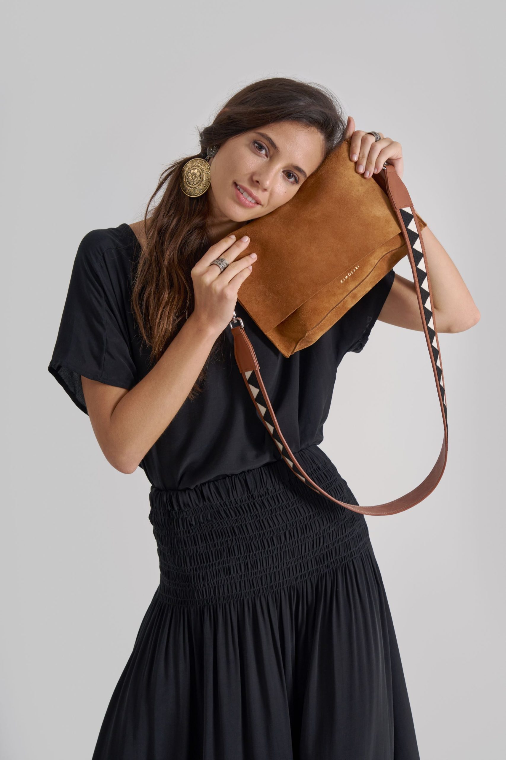 Judith wears JASMINE and KIARA ensemble with the SAI Camel bag