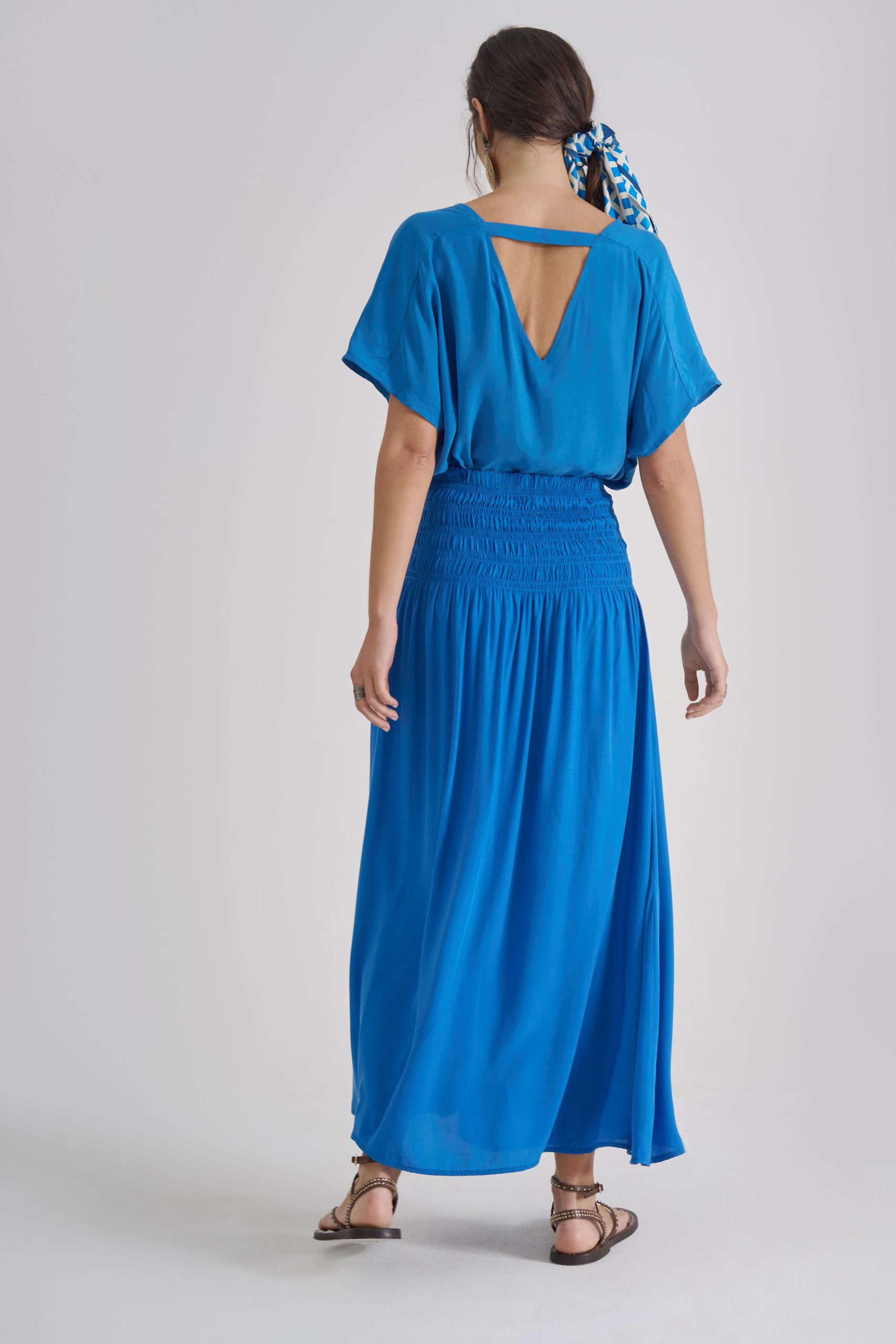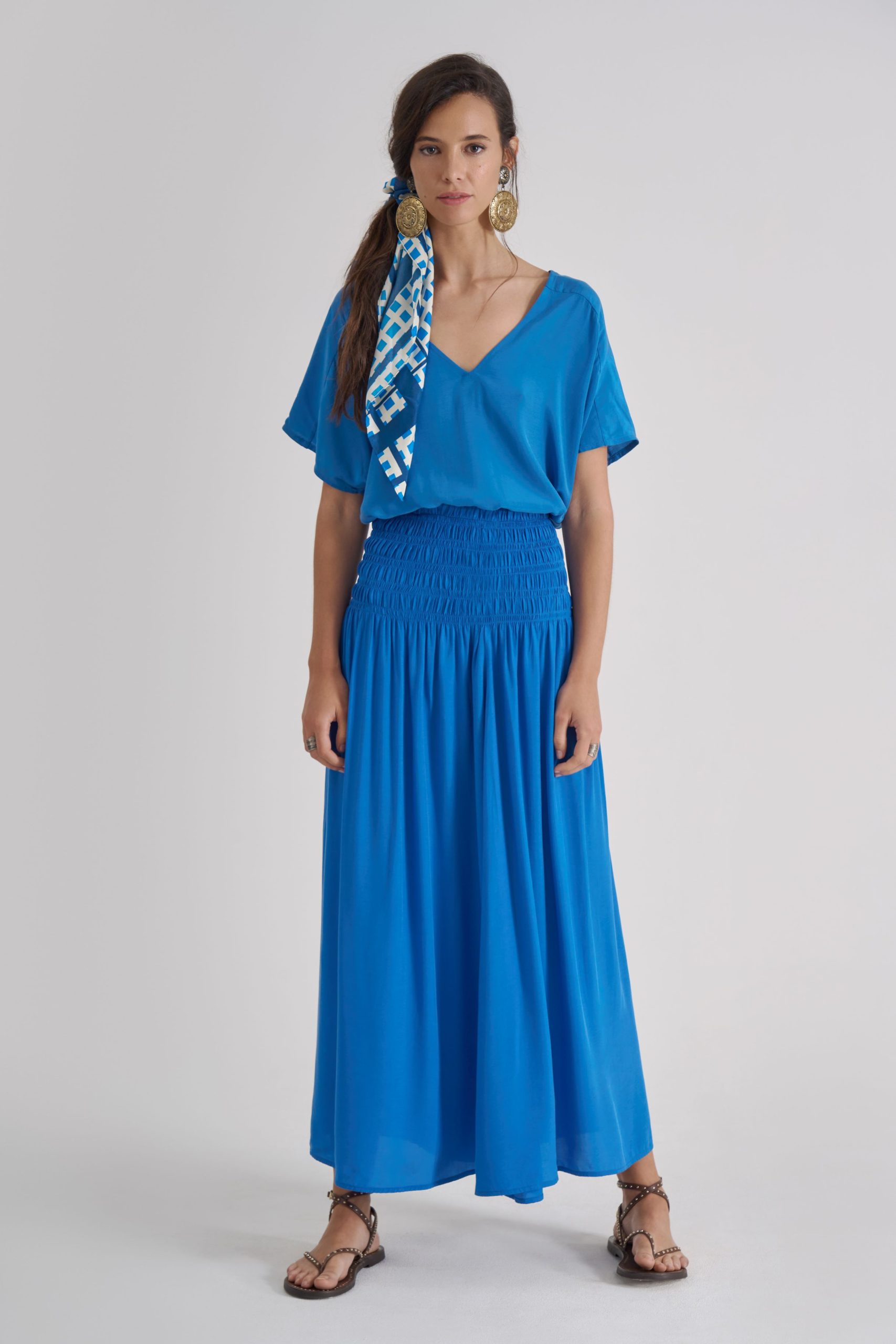 KIARA is a maxi length skirt with an ultra flattering gathered elastic waistband. Comfortable and easy to wear with everything, this skirt is chic for day or night wear. Made from our unique cupro-viscose mix, it is high style made easy.