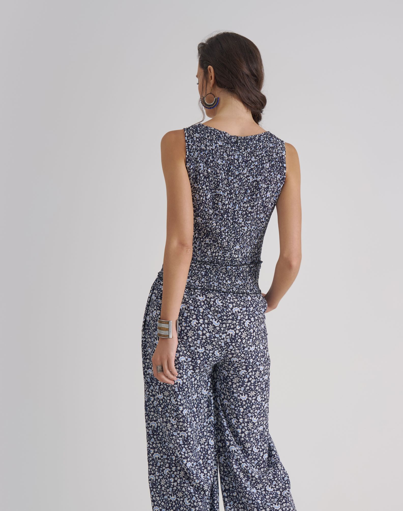 SAMARA, a wide-leg sleeveless jumpsuit combined with a softly shirred top and waist, exuding an elegant appeal. Its universally flattering cut makes it a must-have in our brand’s collection. With a graceful V-neck on the front, a rounded neck, discreet back zipper, and convenient side pockets, SAMARA is thoughtfully designed for optimal comfort and style.