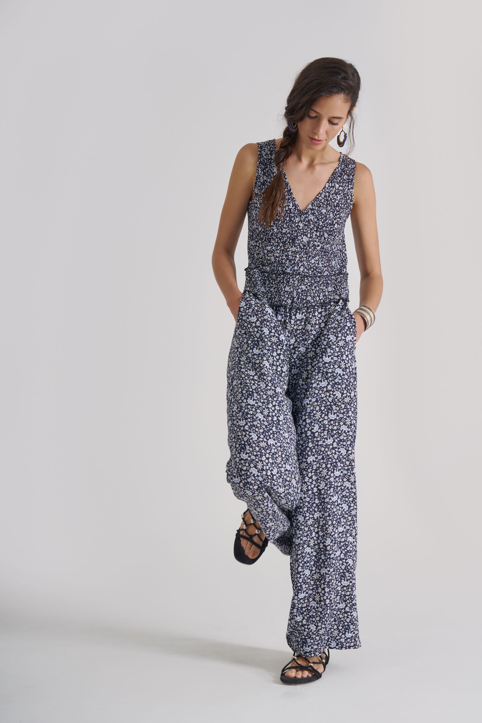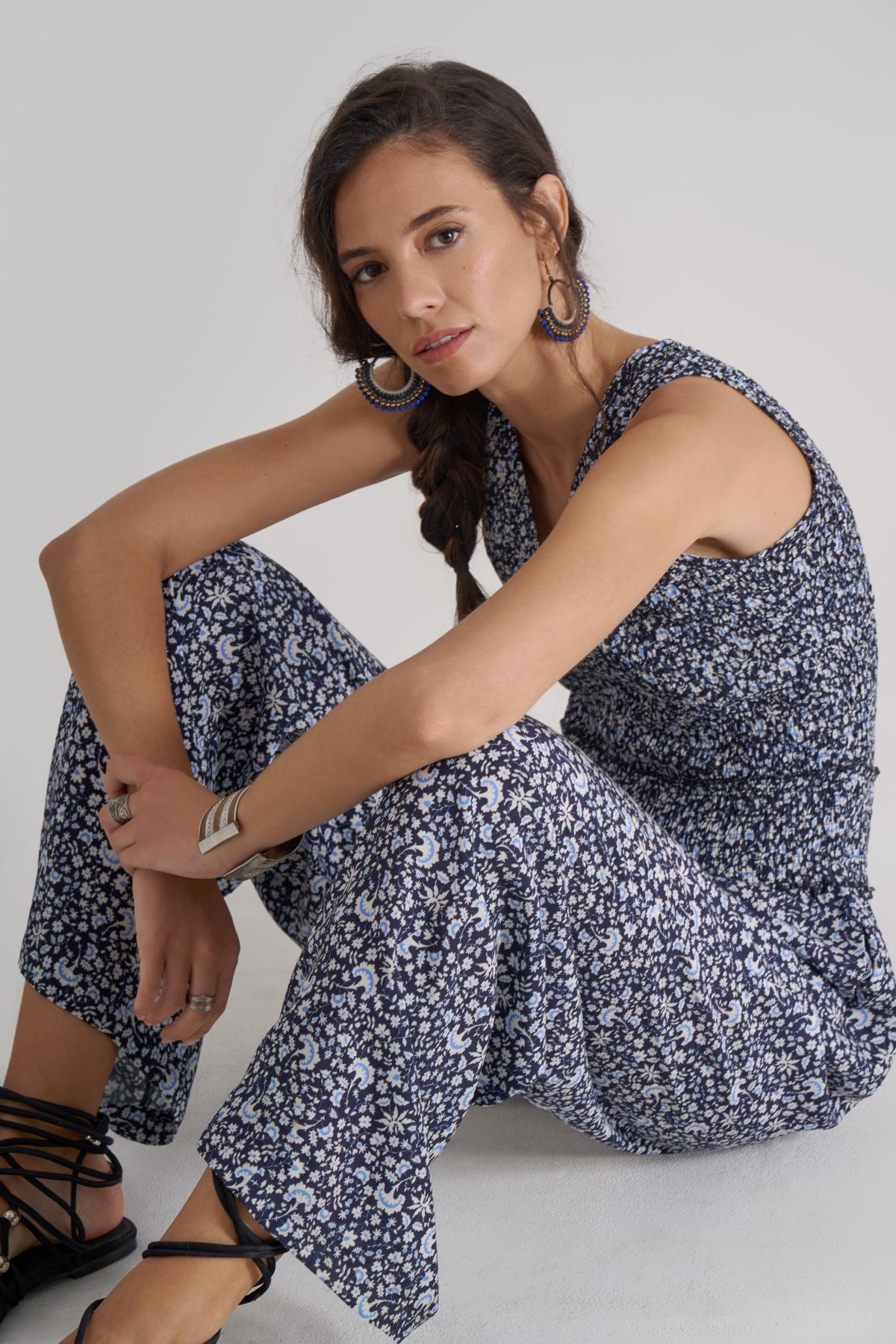 SAMARA Shirred Jumpsuit – Floral Mosaic