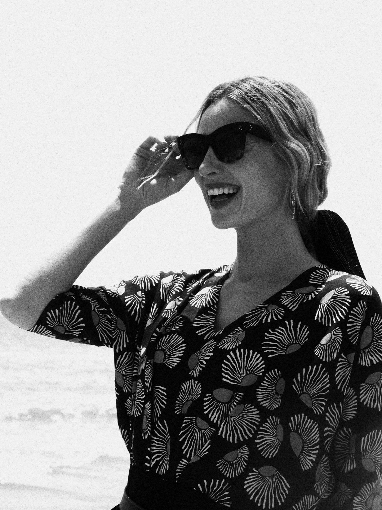 Judith wears the Vera blouse and Shea shorts in Tropical Delight Print